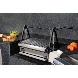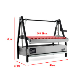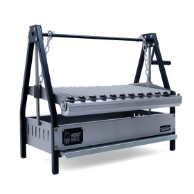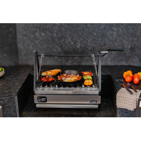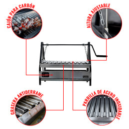 Parrilla de acero inoxidable, altura ajustable y el sabor que solo el carbón te da. Perfecto para quienes quieren un asador premium sin ocupar demasiado espacio.